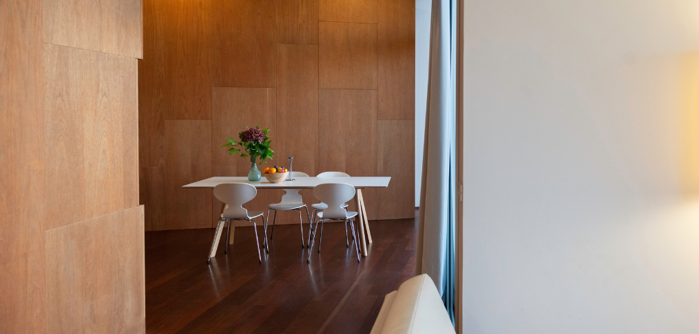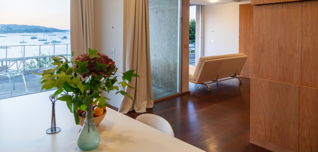 Apartamento rehabilitado en el 2005 por el arquitecto Alfonso Penela y con una esmerada elección de mobiliario contemporáneo, con tonos atlánticos.